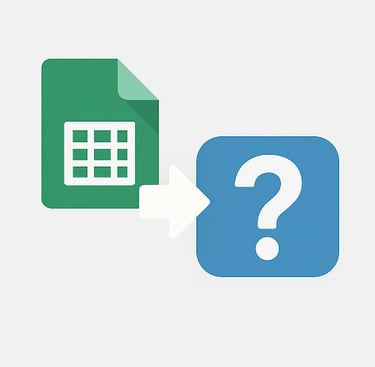 Organiza tus preguntas: Simplemente introduce tus preguntas, respuestas y la respuesta correcta en la primera hoja de tu hoja de cálculo de Google Sheets. Tip: Usa la IA para generar las preguntas. +INFO